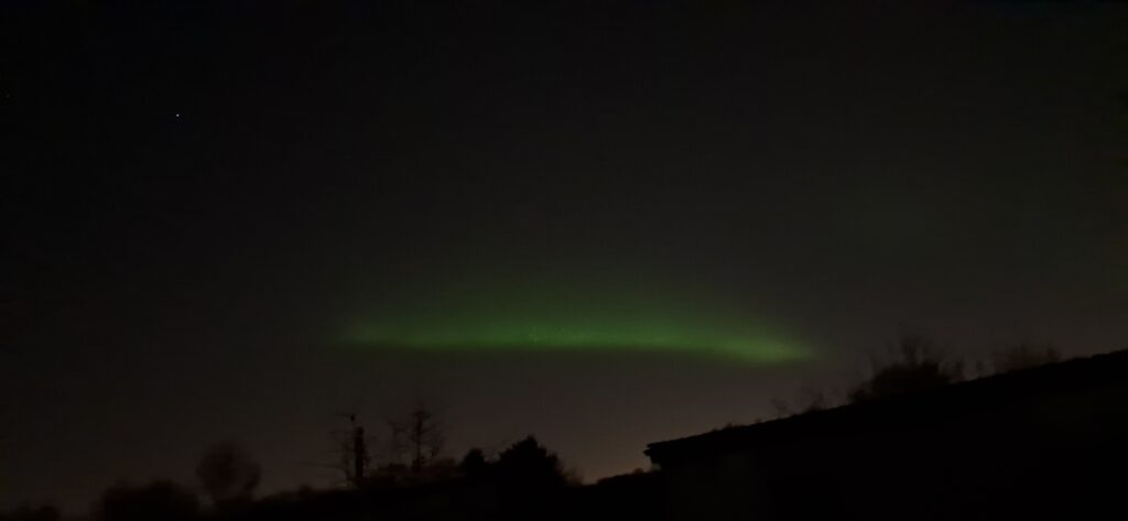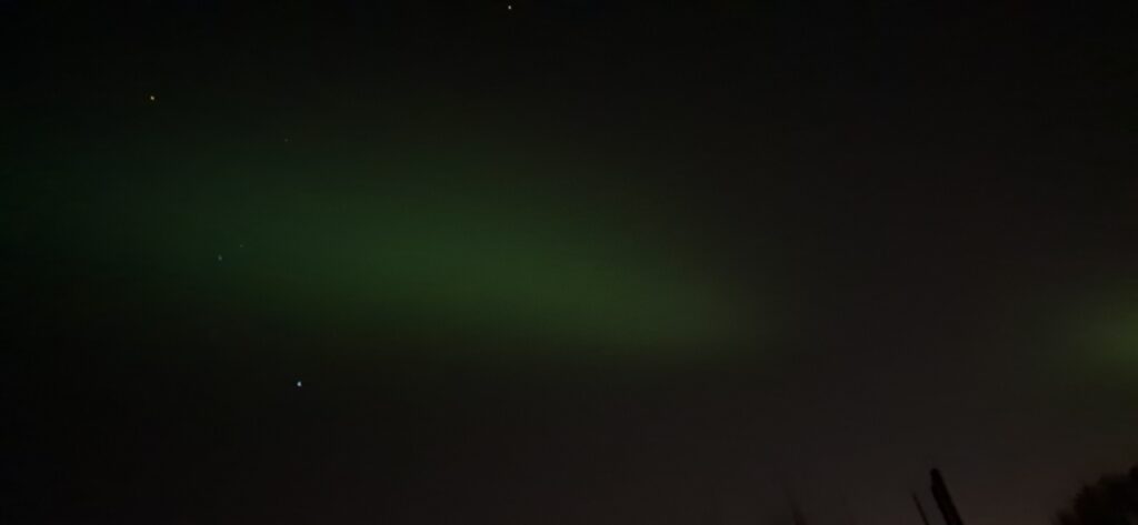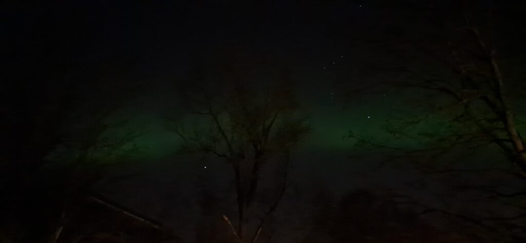 Bis 23:30 Uhr tanzten die Lichter über dem Himmel. Ich bin immer noch völlig überwältigt, dass ich dieses Naturschauspiel miterleben durfte! 😍 Das nächste Mal ist definitiv die große Kamera dabei – aber diese Handy-Schnappschusse sind erst mal eine tolle Erinnerung.“