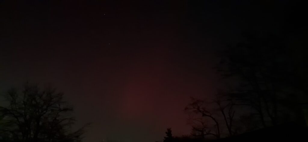 Gegen 21:30 Uhr erlebte ich einen Höhepunkt am Nachthimmel: Polarlichter direkt über Berlin. Es ist beeindruckend, dass ich dieses Meisterwerk der Natur im Jahr 2026 so häufig – statistisch gesehen alle 200 Nächte im Jahr – sehen dürfte. Meine Handyfotos sind zwar nicht perfekt, fängt die Stimmung der Nordlichter aber dennoch gut ein.“