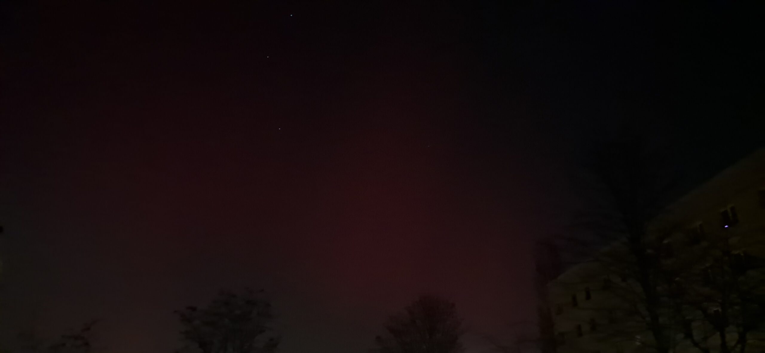 Was für eine unglaubliche Nacht – kurz, aber absolut einmalig! Eigentlich war ich viel zu müde, um noch zum Fotografieren vor die Tür zu gehen. Doch ein Blick auf mein Handy verriet mir: Polarlichter über Berlin! Trotz der Erschöpfung habe ich mich aufgerafft, und es hat sich gelohnt. Ich konnte diesen atemberaubenden Höhepunkt mit meinem Smartphone festhalten. Ein Moment, den ich so schnell nicht vergessen werde!“